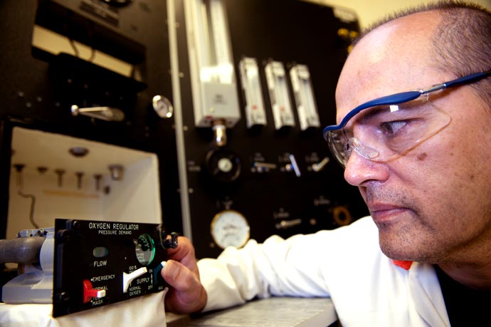 Our in-house manufactured universal oxygen rig, situated within our instrument department's clean air room, facilitate the testing and calibration of an extensive range of oxygen components including demand regulators as fitted to various civil and military aircraft.